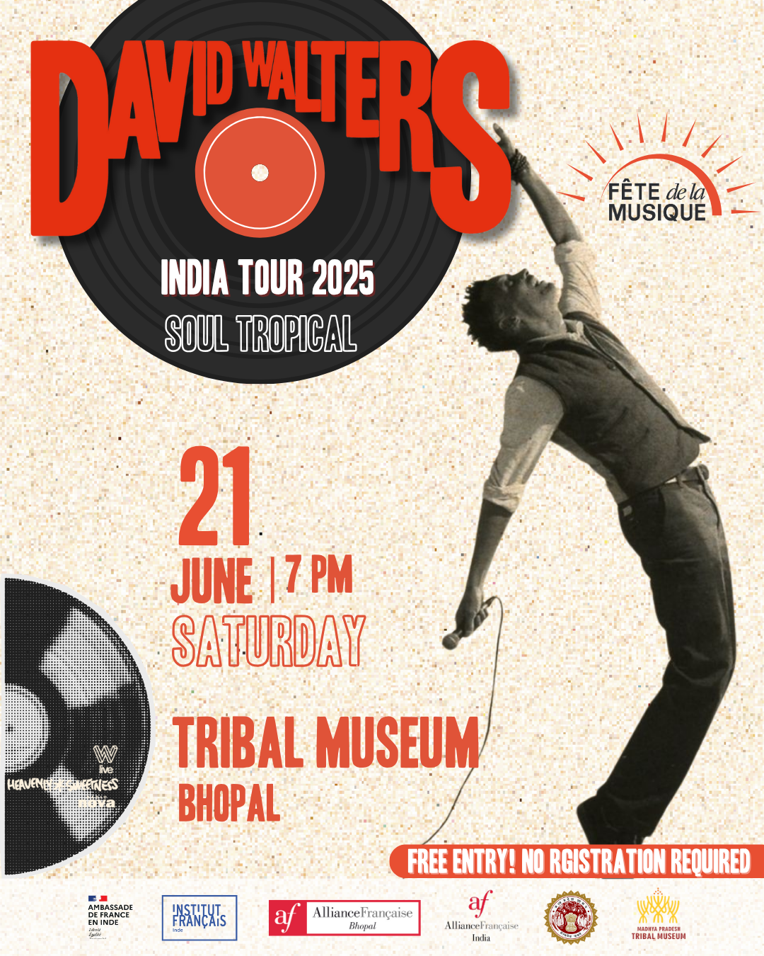 French multi-instrumentalist David Walters stops in Bhopal on his India tour (18 June – 5 July) to present Soul Tropical—a vibrant fusion of Afro-Caribbean rhythms, warm synths, and sun-soaked island soul. Whether evoking carefree beach vibes or deep introspection, his music radiates sunshine, even on the rainiest of days.