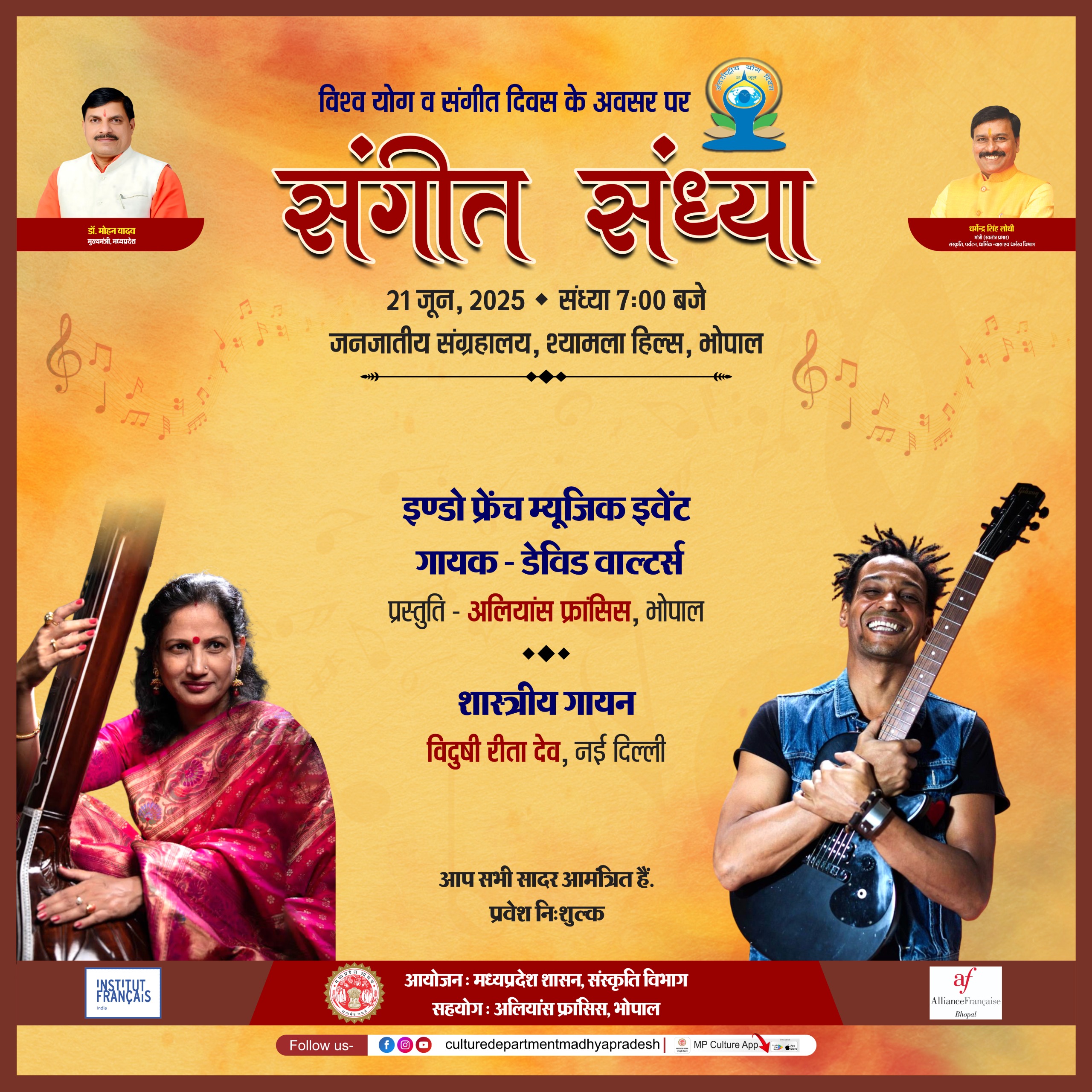 This evening will be a truly Indo-French cultural event as the concert will be followed by a Classical music performance by the Delhi-based artist Rita Dev. This special event, brought to you by the French Institute in India, the Alliance Française de Bhopal and the Department of Culture of Madhya Pradesh, promises to be a musical evening filled with culture, celebration and of course music!