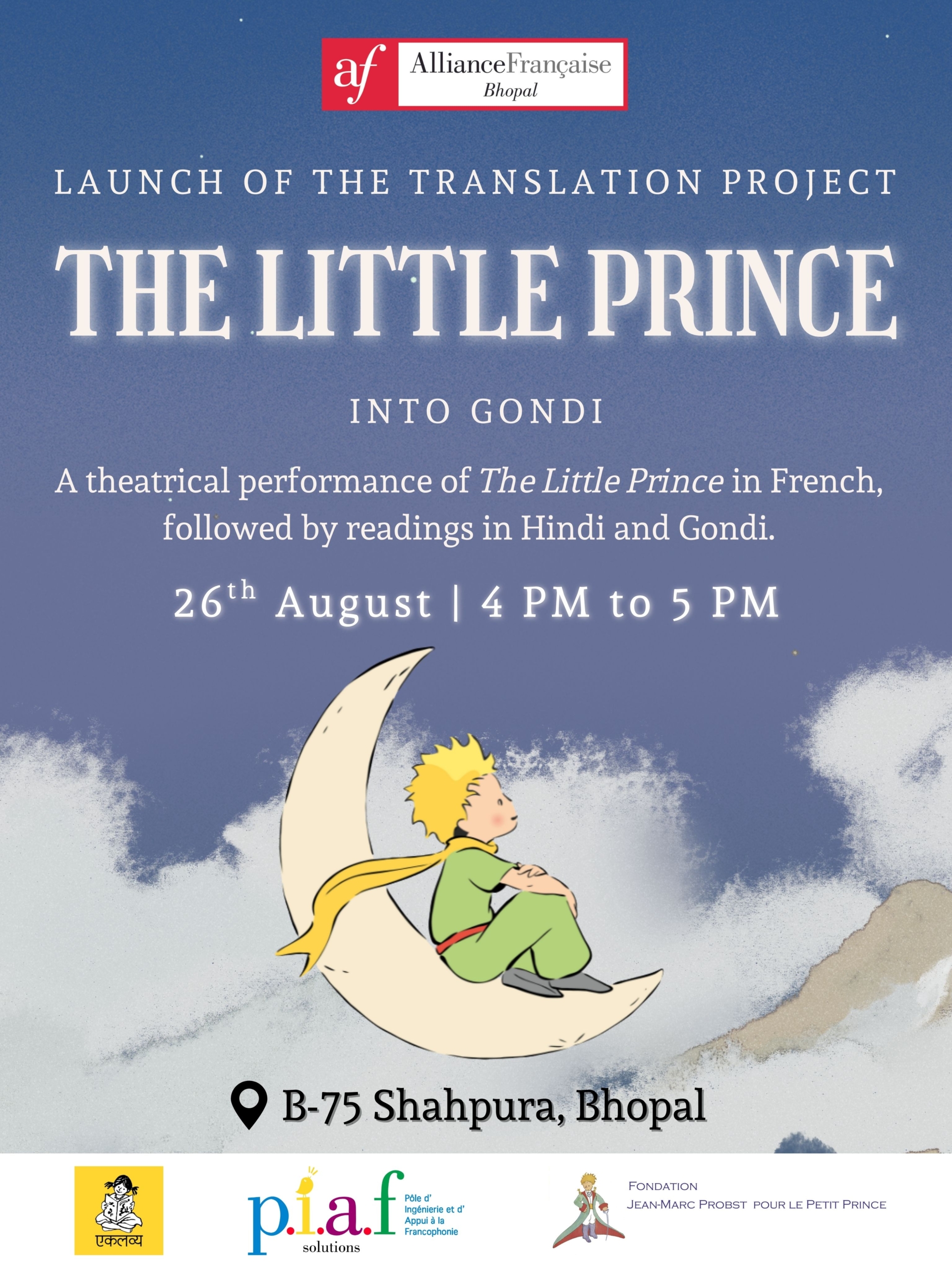 Join us for a multilingual celebration featuring Le Petit Prince in French, Hindi and Gondi as we launch a translation project of this most popular story in Gondi language in collaboration with PIAF Solutions, Fondation Jean-Marc Probst pour le Petit Prince, and Eklavya Foundation.